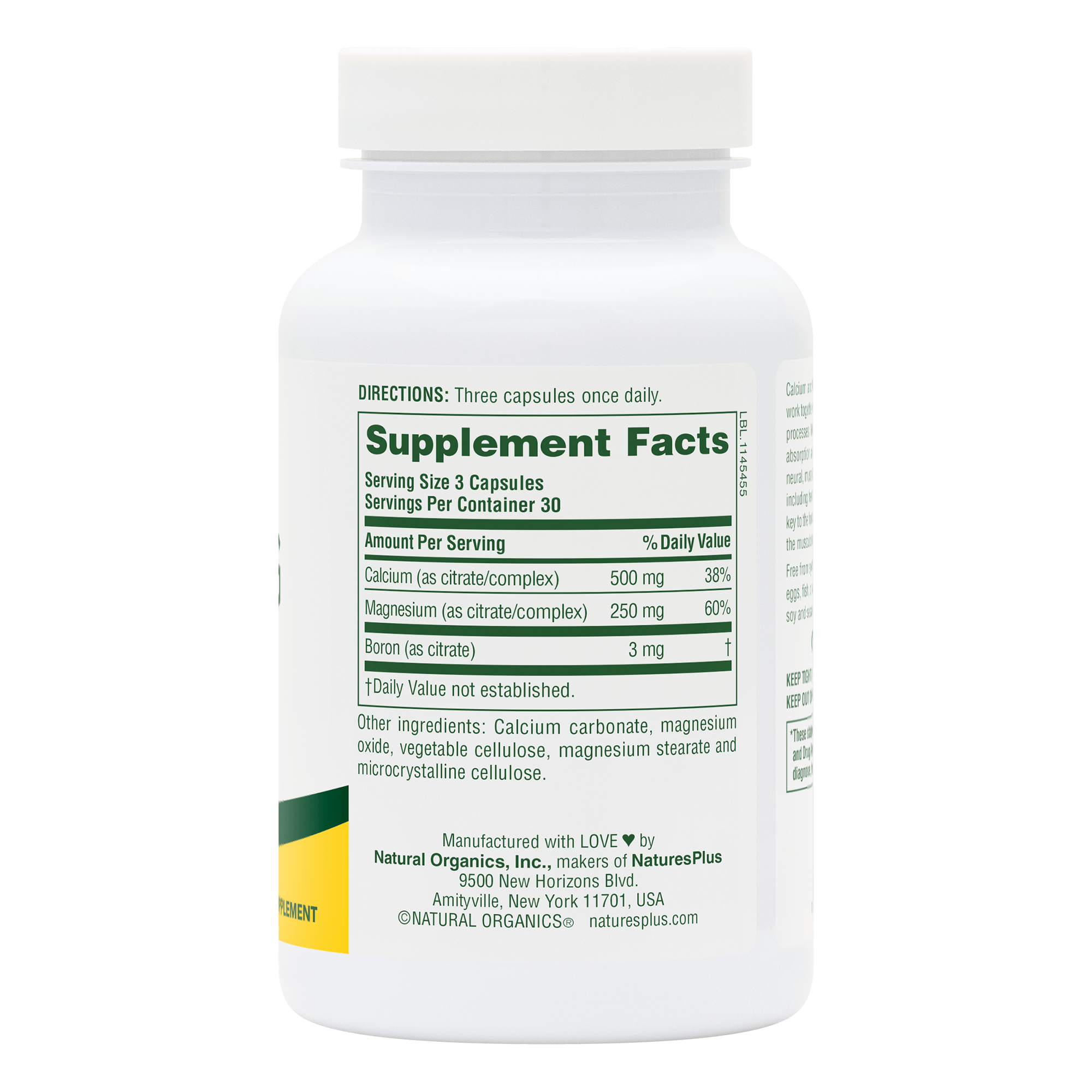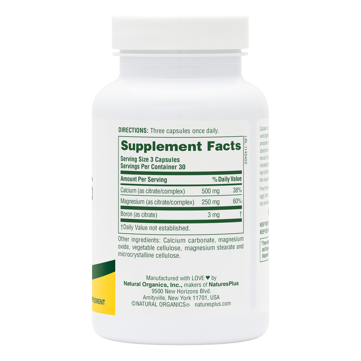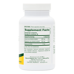 NaturesPlus Cal/Mag Citrate delivers 500 mg of calcium and 250 mg of magnesium in a citrate form for enhanced absorption and digestive comfort. This essential mineral duo supports bones, muscles, nerves and energy metabolism.*