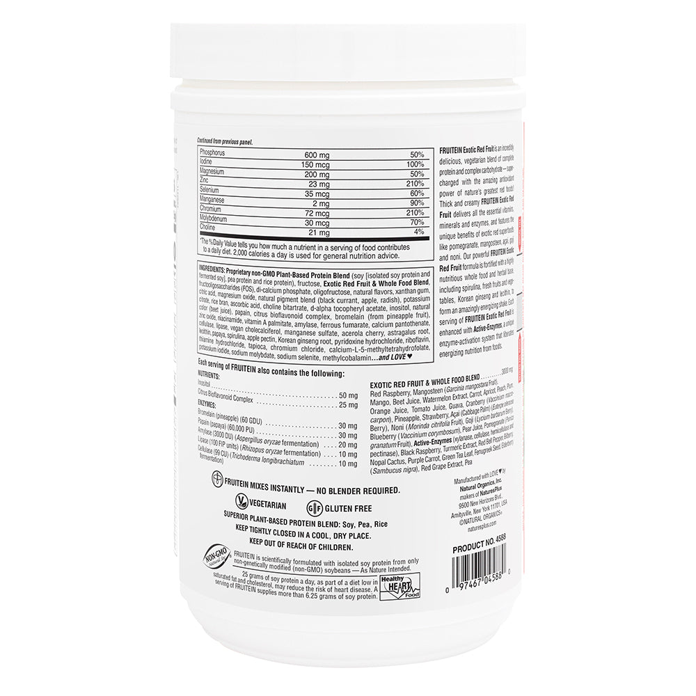 FRUITEIN Exotic Red Fruit Shake is a delicious, plant-based protein blend packed with essential nutrients and the free radical–fighting power of nature’s most vibrant red fruits. It’s a flavorful way to support your energy, immunity and overall wellness.