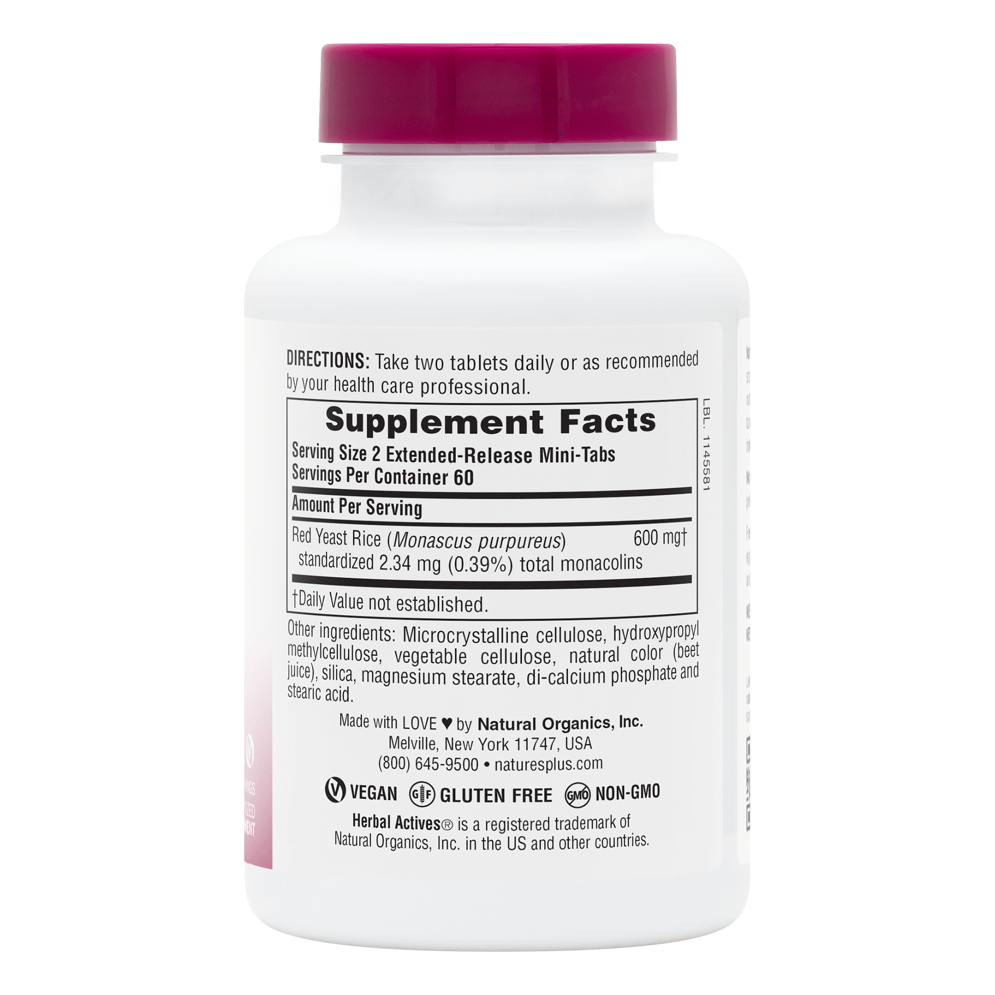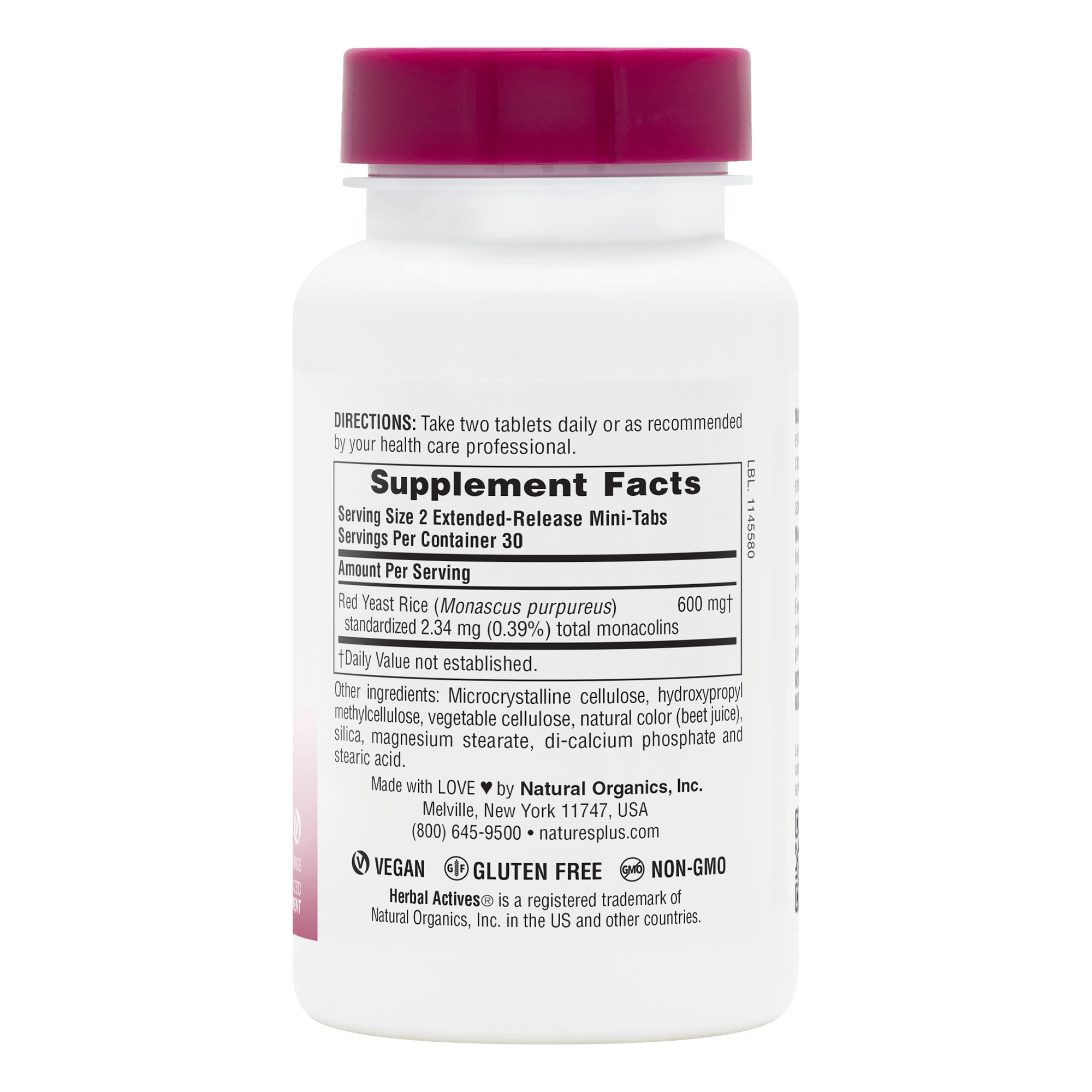 Herbal Actives Red Yeast Rice delivers a full 600 mg per serving in an easy-to-take extended-release format—standardized for consistent activity in every serving.