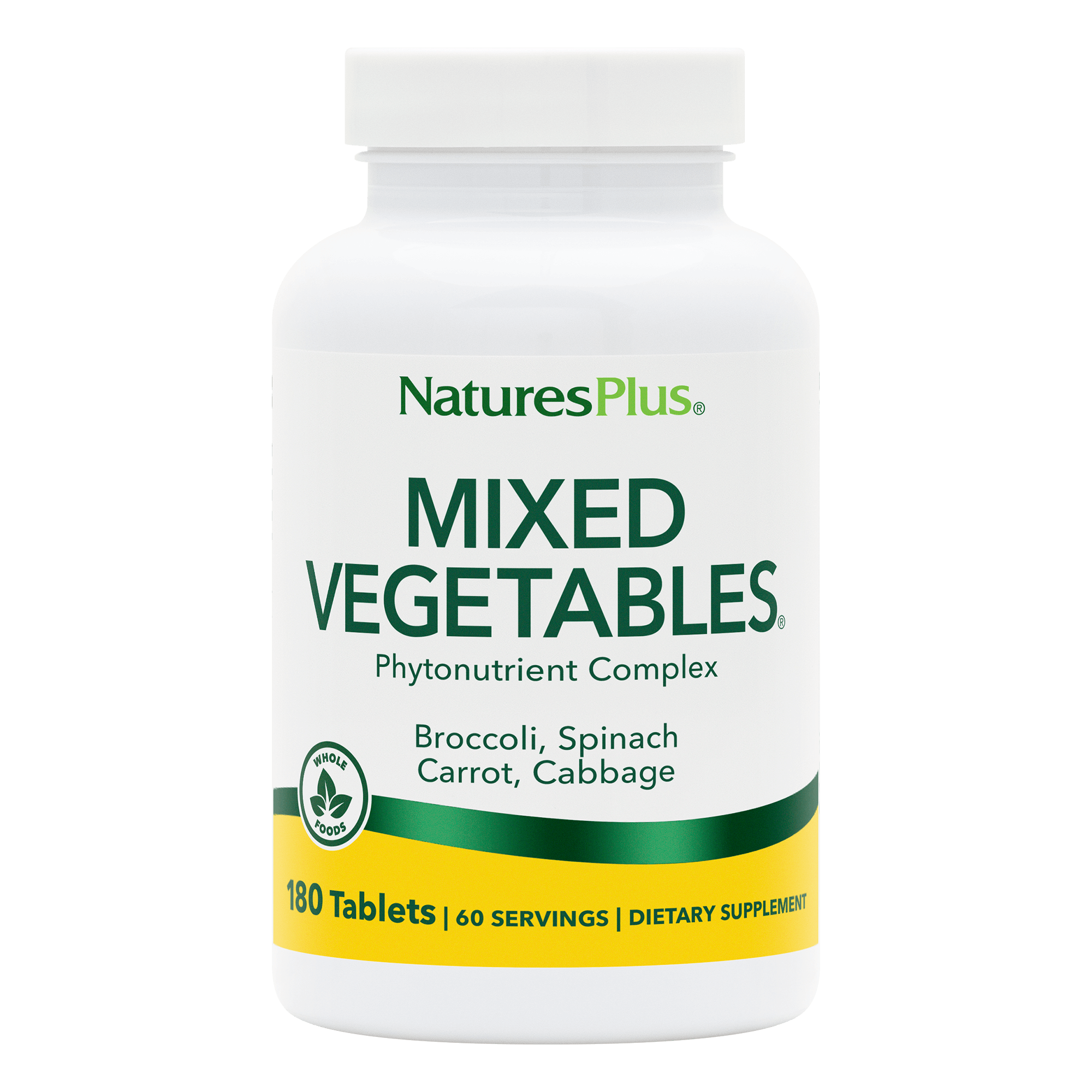 NaturesPlus Mixed Vegetables Tablets deliver a concentrated blend of leafy greens, roots and cruciferous vegetables to support balanced nutrition and vitality.*