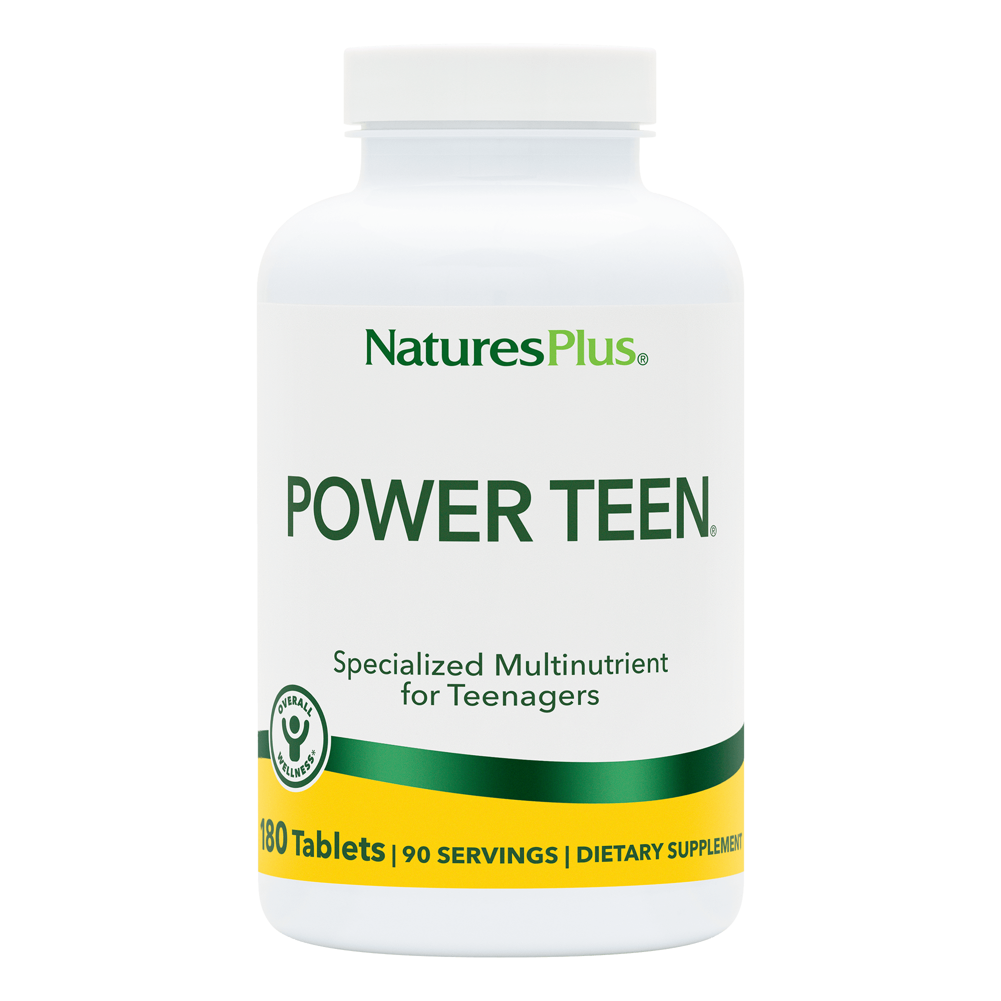 NaturesPlus POWER TEEN Multivitamins deliver essential nutrients in a teen-friendly formula designed to support energy, immunity and overall wellness. With concentrated greens and vitamin D3, plus enhanced absorption, POWER TEEN helps your teen thrive—without the eye rolls.*