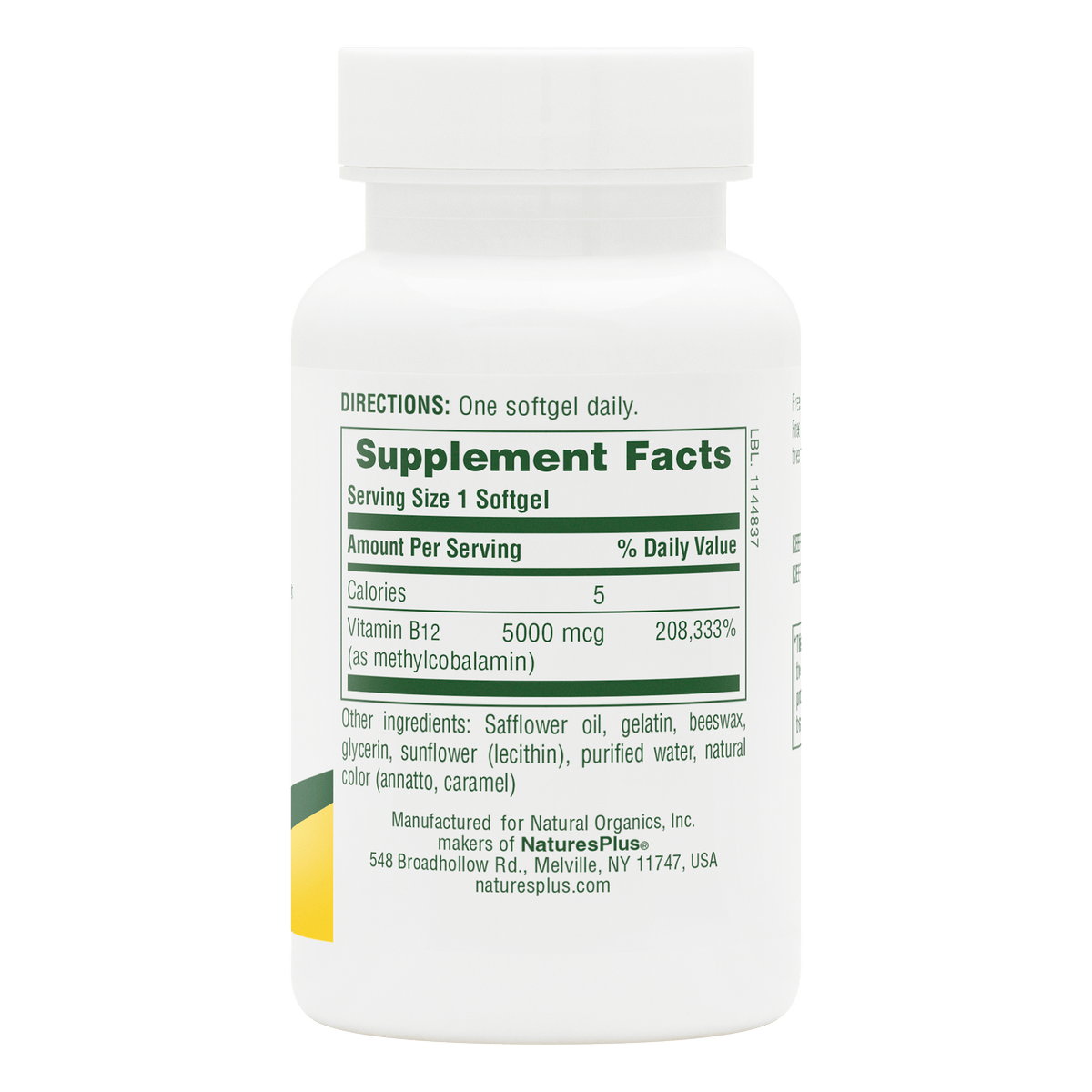NaturesPlus Shot-O-B12 Softgels deliver fast-acting vitamin B12 to support energy, mood, and immune health—all in an easy-to-take softgel.‡ It’s your daily boost!*