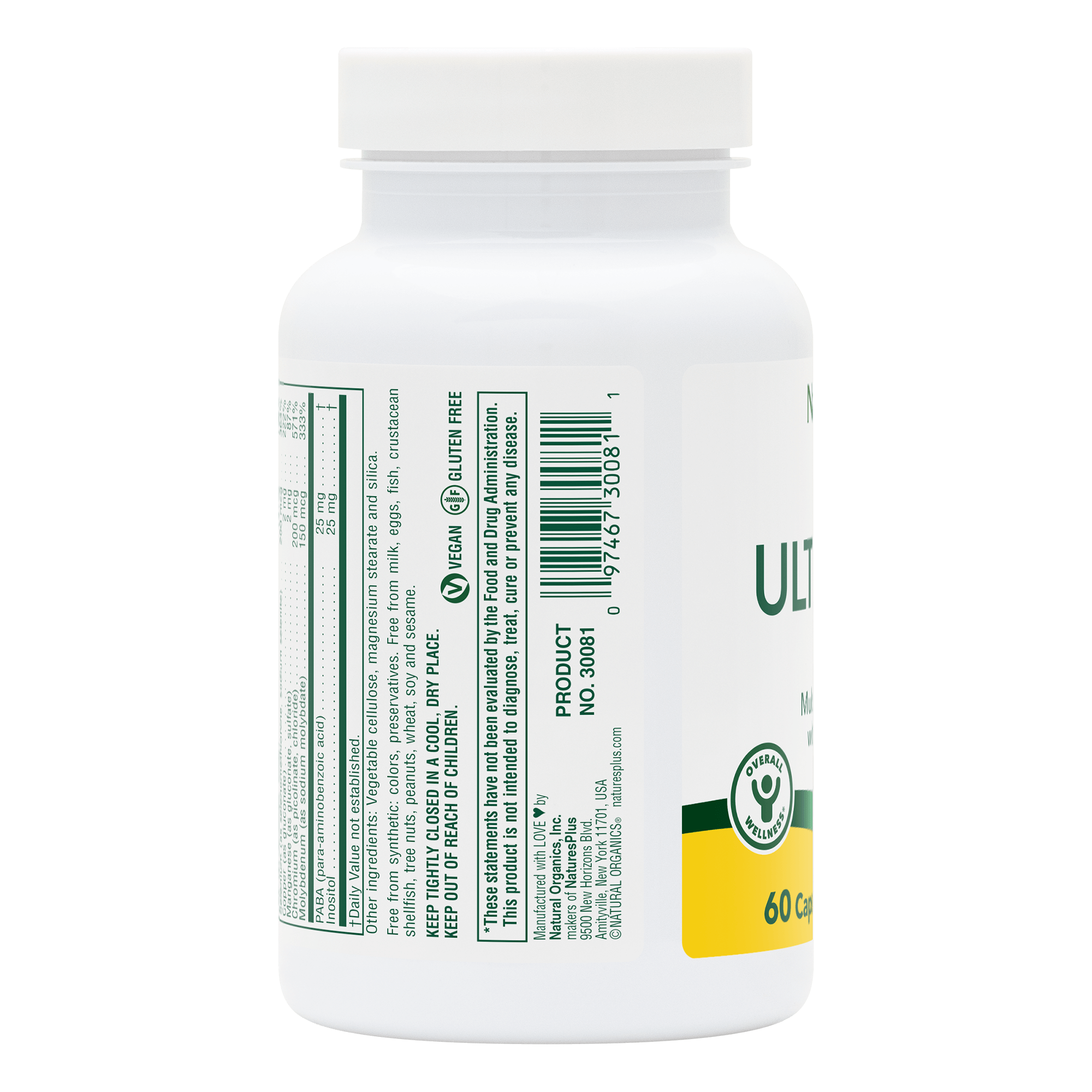 NaturesPlus Ultra One Iron-Free provides a full range of essential vitamins and minerals—minus the iron—in fast-acting vegan capsules to support energy, immunity and overall well-being.*